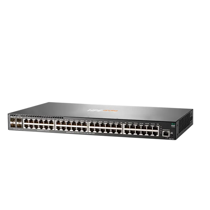 Doté de 48 ports RJ-45 Gigabit Ethernet et de 4 ports SFP+ 10 GbE, ce modèle permet de déployer des connexions à haute densité avec des liaisons montantes rapides vers les cœurs de réseau. Il fonctionne en niveau 2+ avec capacités de niveau 3, incluant le routage statique, RIP et OSPF, tout en restant facile à configurer grâce à Aruba Central ou à son interface CLI/web.