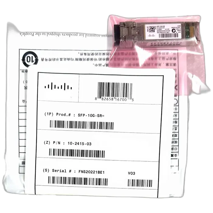 Ce module est remplaçable à chaud, ce qui signifie qu’il peut être inséré ou retiré sans interrompre le fonctionnement de l’équipement hôte, comme un switch ou un routeur Cisco. Il est compatible avec les ports SFP+ des équipements Cisco prenant en charge les modules 10GBASE-SR.