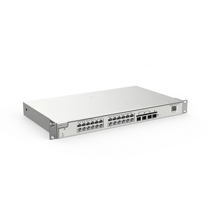 Switch L3 RG-NBS5100-24GT4SFP – 24 ports Gigabit + 4 ports SFP. Fonctions de routage avancées, alimentation redondante et capacité 128Gbps. Solution idéale pour les réseaux nécessitant performance L3 et fiabilité.